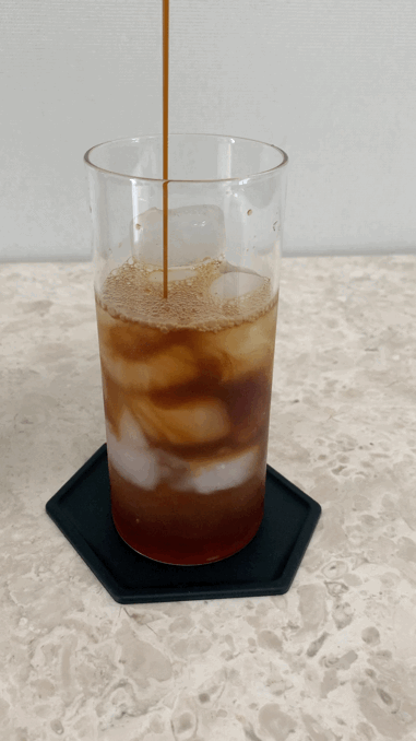 언 에스프레소에 뜨거운 물을 살짝 부어
