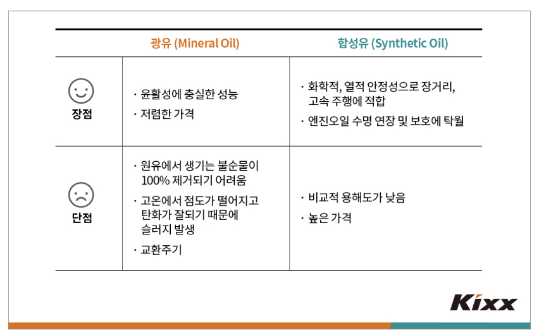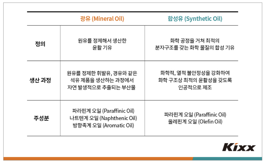 그러나 광유와 합성유는 구성 기유에 따라