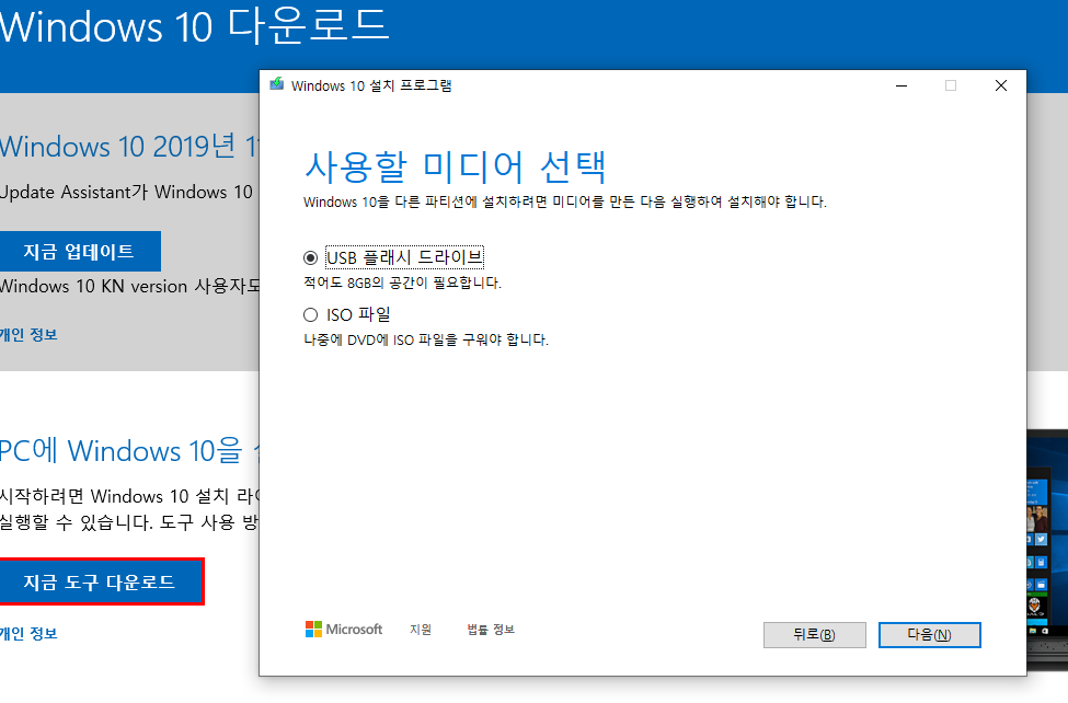 Windows 10 설치를 위한 Windows 10 설치 USB 만들기