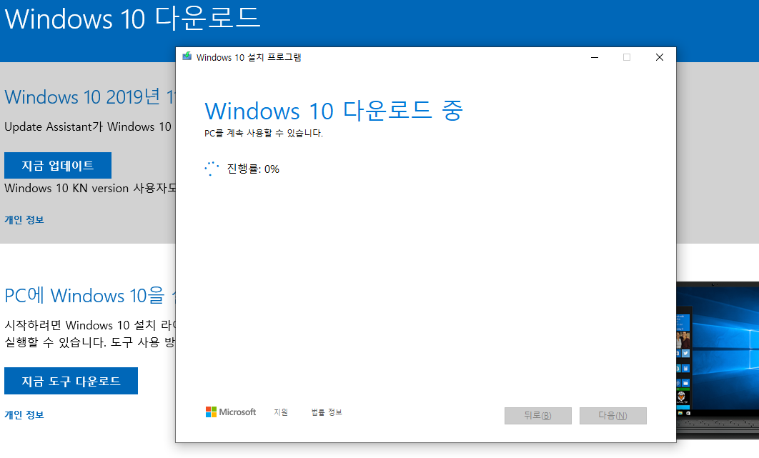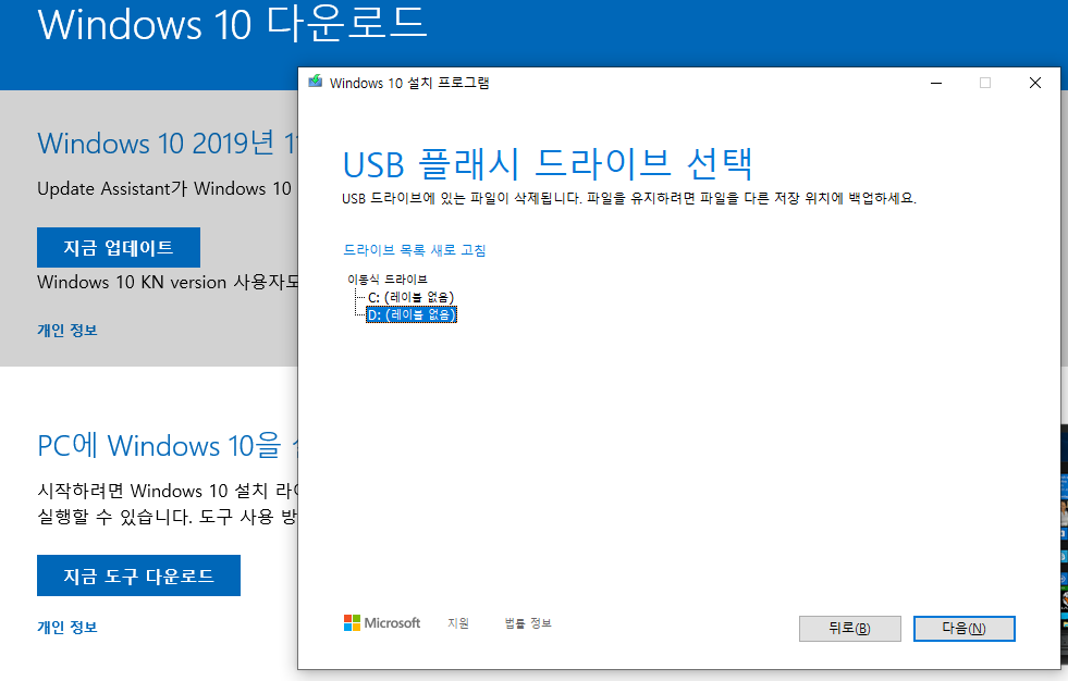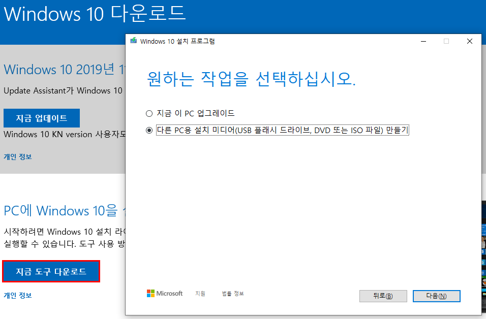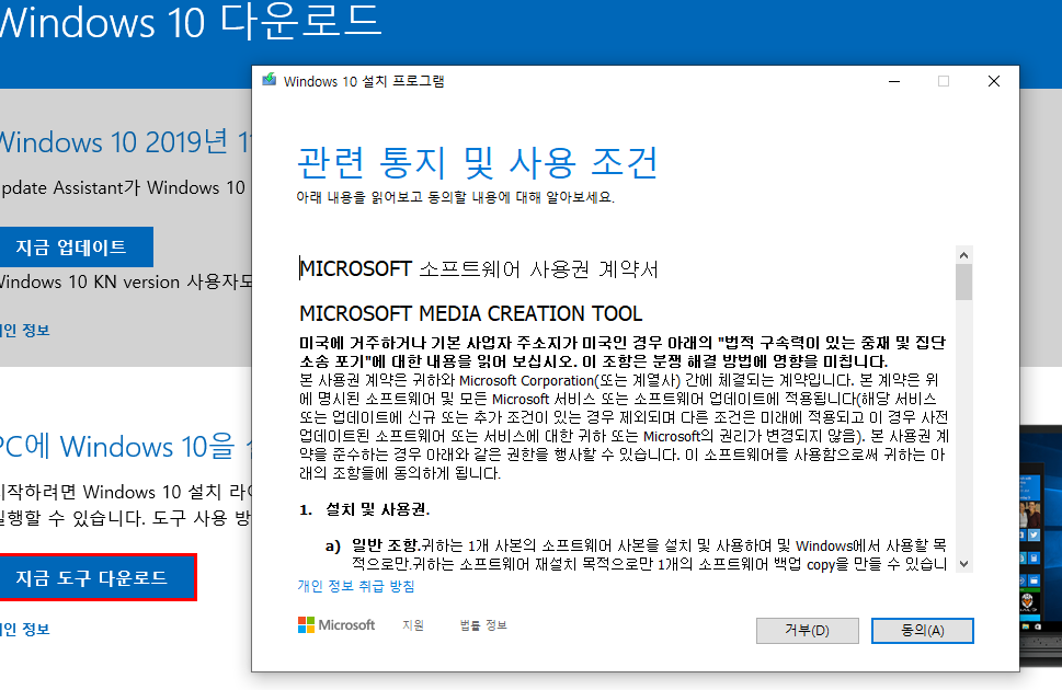 2. 마이크로 소프트 공식 홈페이지에서 Windows 10 드라이브 설치