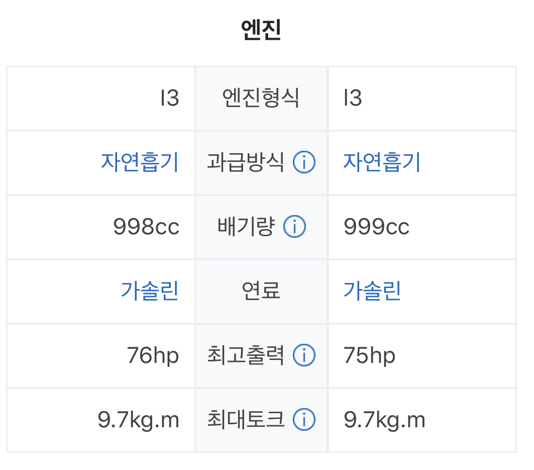 모두 1000cc 배기량을 가지고 있어