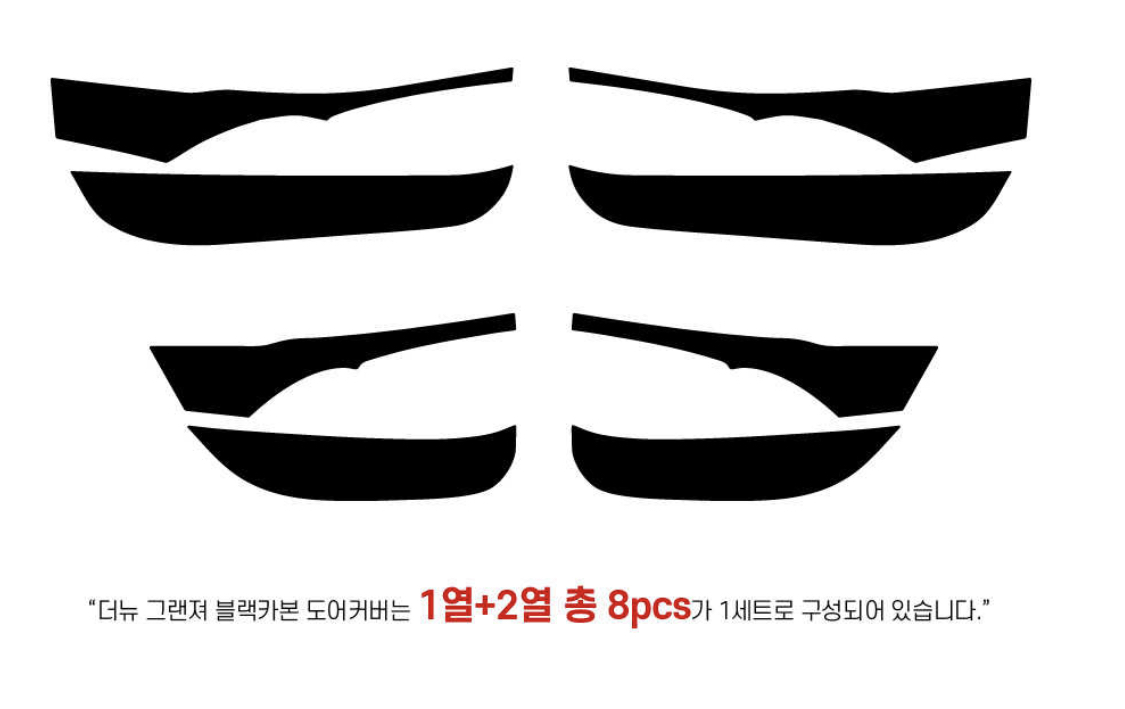 앞좌석, 뒷좌석 4개의 문에 붙일 수 있는 8개의 스티커가 1세트입니다.
