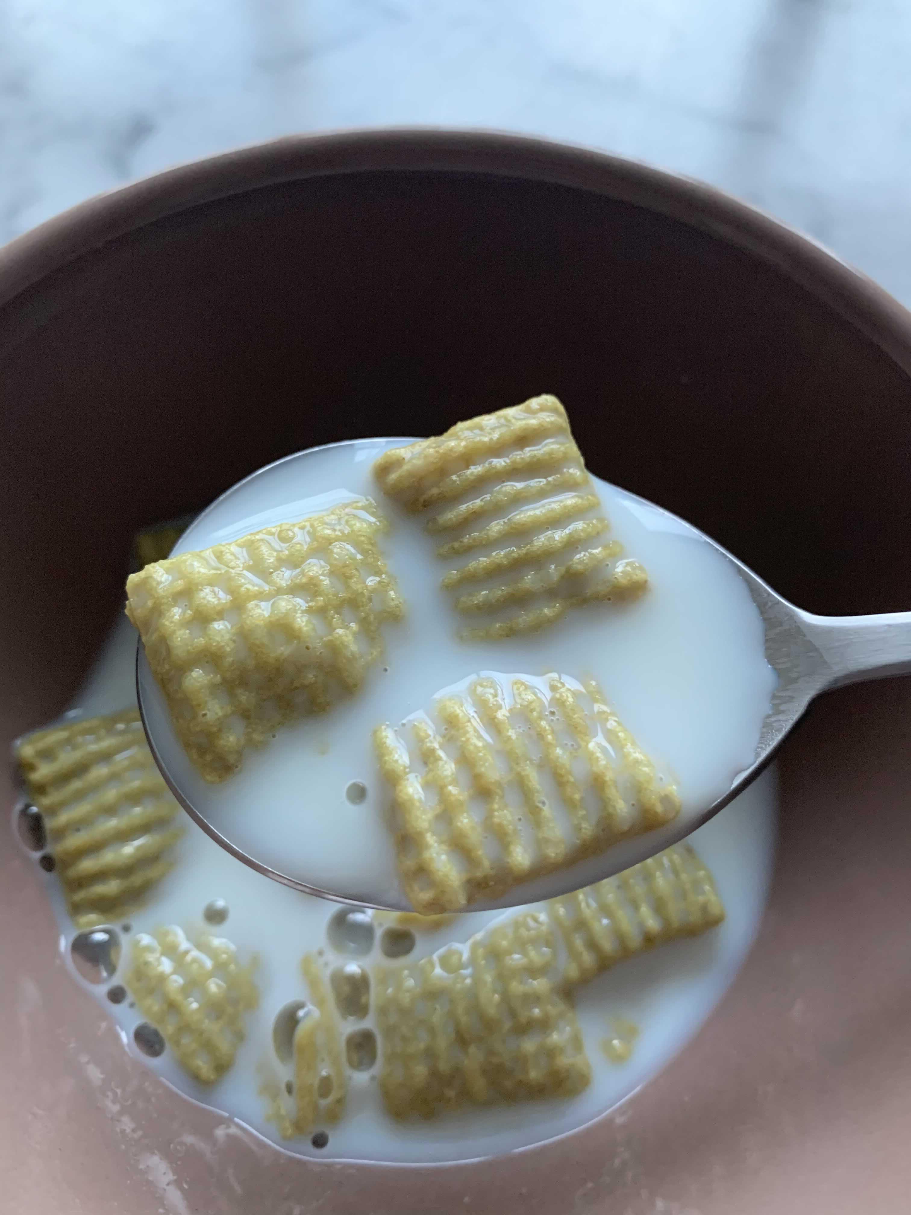 첵스 구멍 사이로 우유가 충분히 들어와서