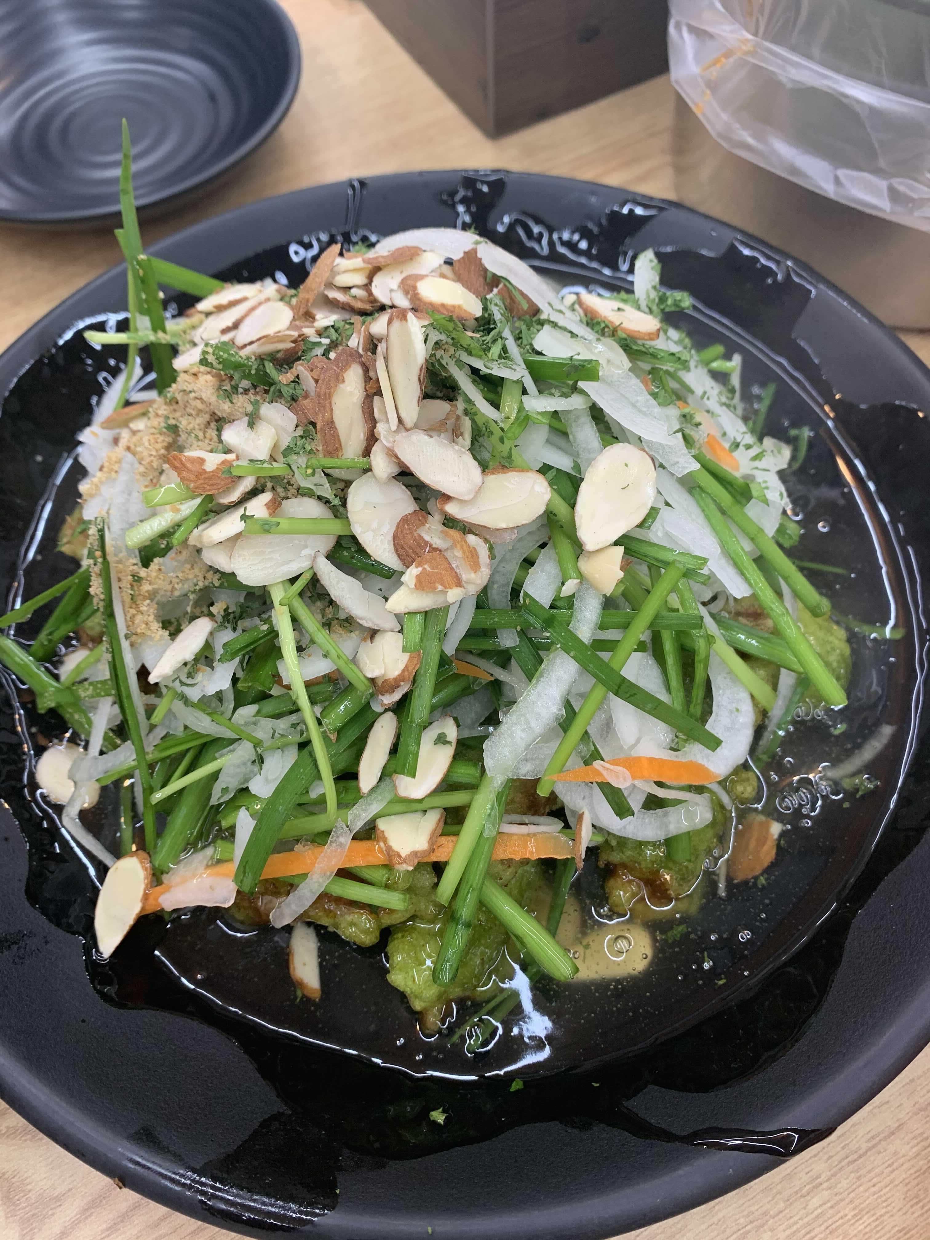 야채랑 견과류 올려 냠